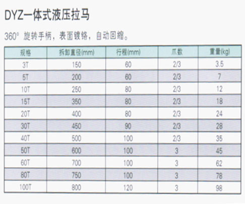 整體式液壓拉馬是以油壓起動桿直接前進(jìn)移動,故推動桿本身不作傳動,鉤爪座又可隨螺紋直接作前進(jìn)后退之調(diào)距、操作方便,只要把手柄前后小幅度擺動。使用省力、防滑、不受場地、方向(0-360°)、位置(2爪、3爪)限制、廣泛應(yīng)用于拆卸各種圓盤、法蘭、齒輪、軸承、皮帶輪等。是替代傳統(tǒng)拉馬的理想工具。