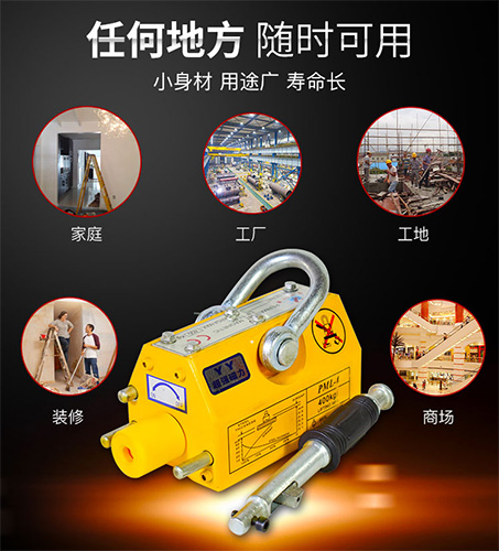 適用于造船、工程機(jī)械、汽車等行業(yè)常溫鋼板起吊、搬運(yùn)等作業(yè)的起重工具。 主要用于吊裝過(guò)程中與被吊裝工件的連接,(比如:和環(huán)鏈電動(dòng)葫蘆,鋼絲繩電動(dòng)葫蘆等配套)用于移動(dòng)鐵板、塊和圓柱形導(dǎo)磁材料的工作。操作方便、安全可靠、結(jié)果緊湊輕巧。廣泛應(yīng)用在工廠、碼頭、倉(cāng)庫(kù)、交通運(yùn)輸行業(yè)中。改進(jìn)裝卸搬運(yùn)作業(yè)的工作條件,提高勞動(dòng)效率。